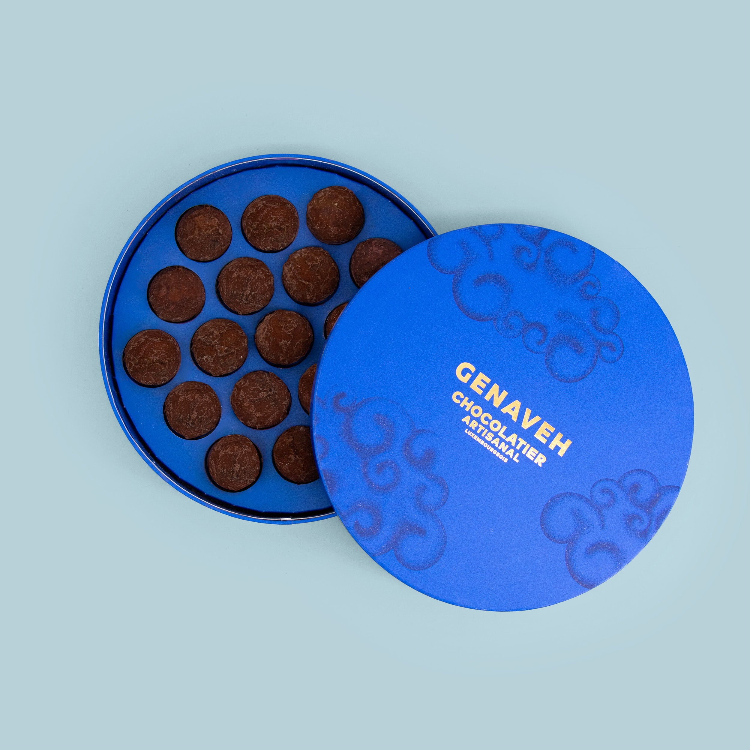 Chaque truffe est réalisée à partir de chocolat noir double origine : Venezuela et Équateur, pour un équilibre parfait entre intensité, richesse aromatique et fondant incomparable.