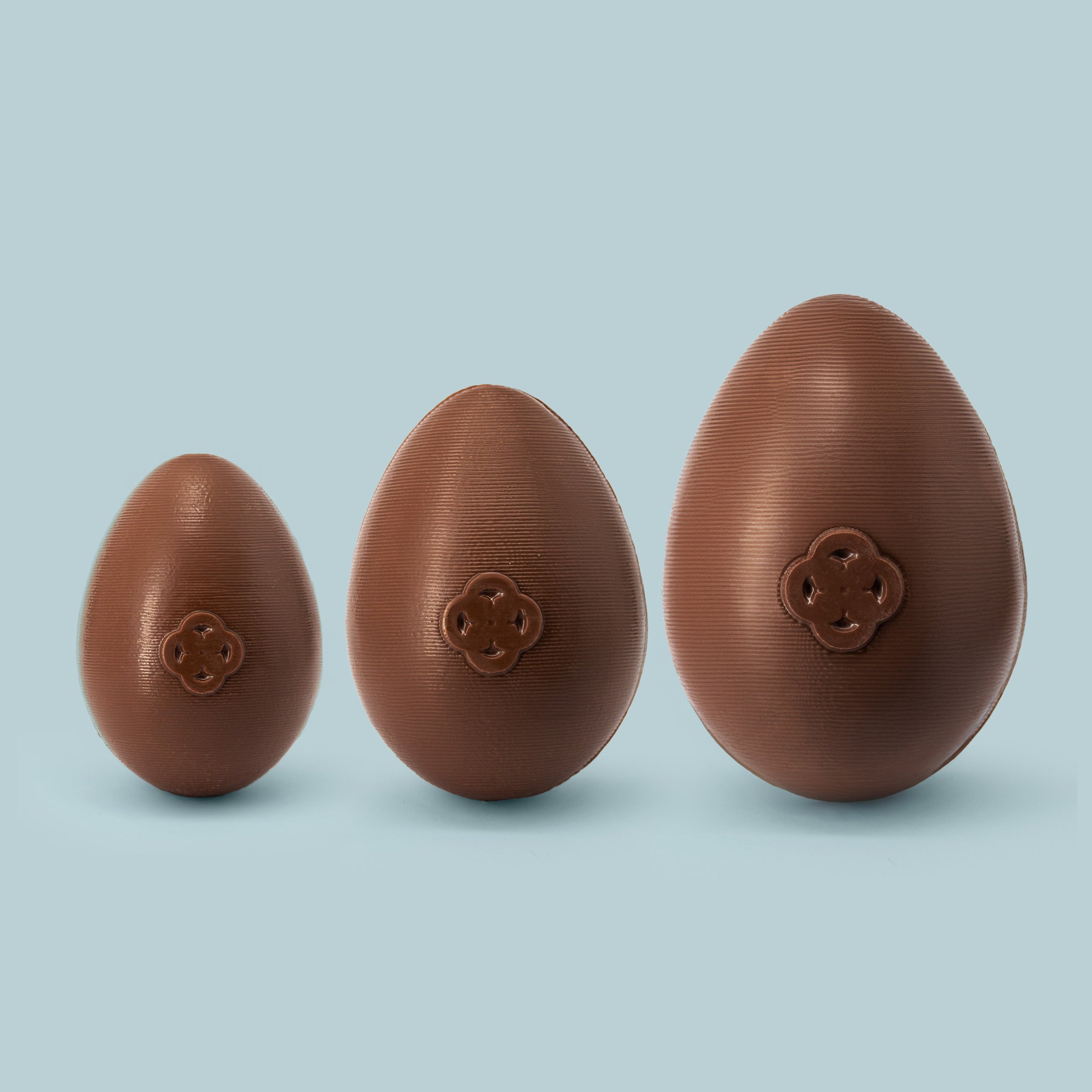 Jedes Ei ist in 39%iger Milchschokolade oder 63%iger Zartbitterschokolade erhältlich und wird als ein Stück mit raffiniertem Design präsentiert, bei dem Ästhetik und Schokoladengenuss in einer zeitgenössischen Interpretation von Ostern zusammenkommen.