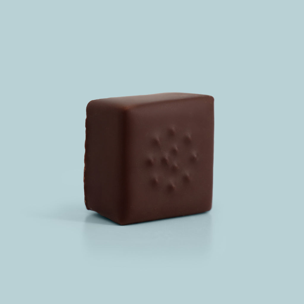 - Praliné amande et poivre du Timut enrobé de chocolat noir 63 %